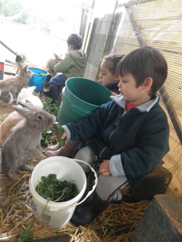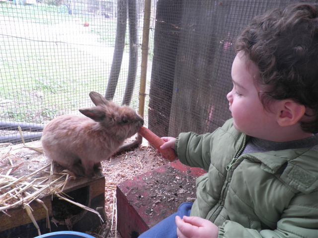 תמונה אחר כך: פעוטון סחלב בפעילות. רואים את יאיר פרקר מאכיל את הארנבת.