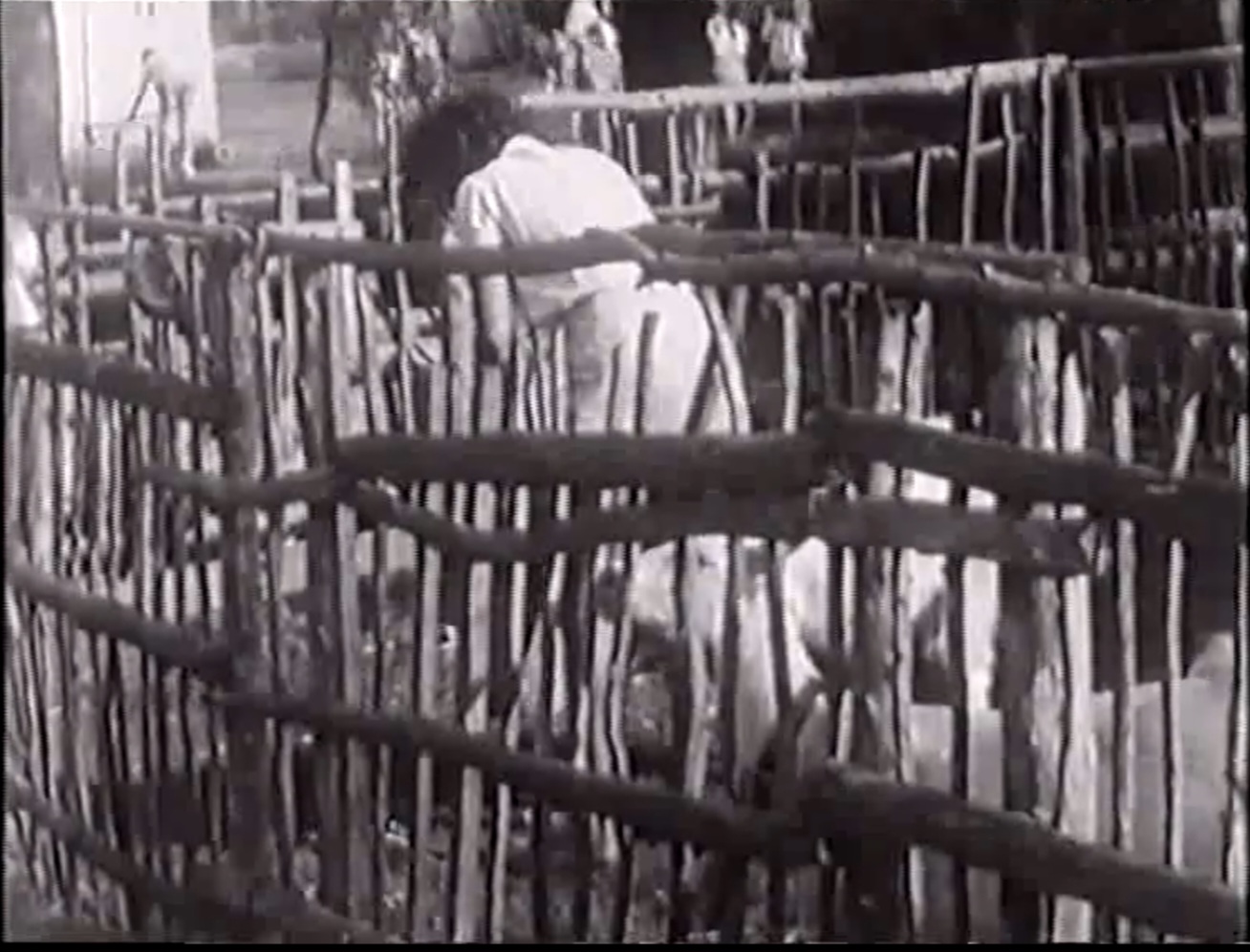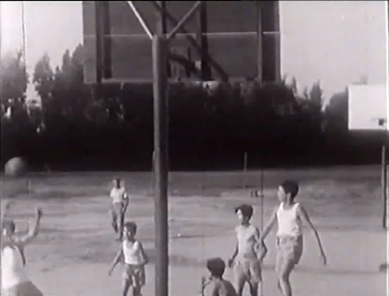 מגרש כדורסל ללא ריצוף או בטון, צמוד לגדר של פינת החי לשעבר.
