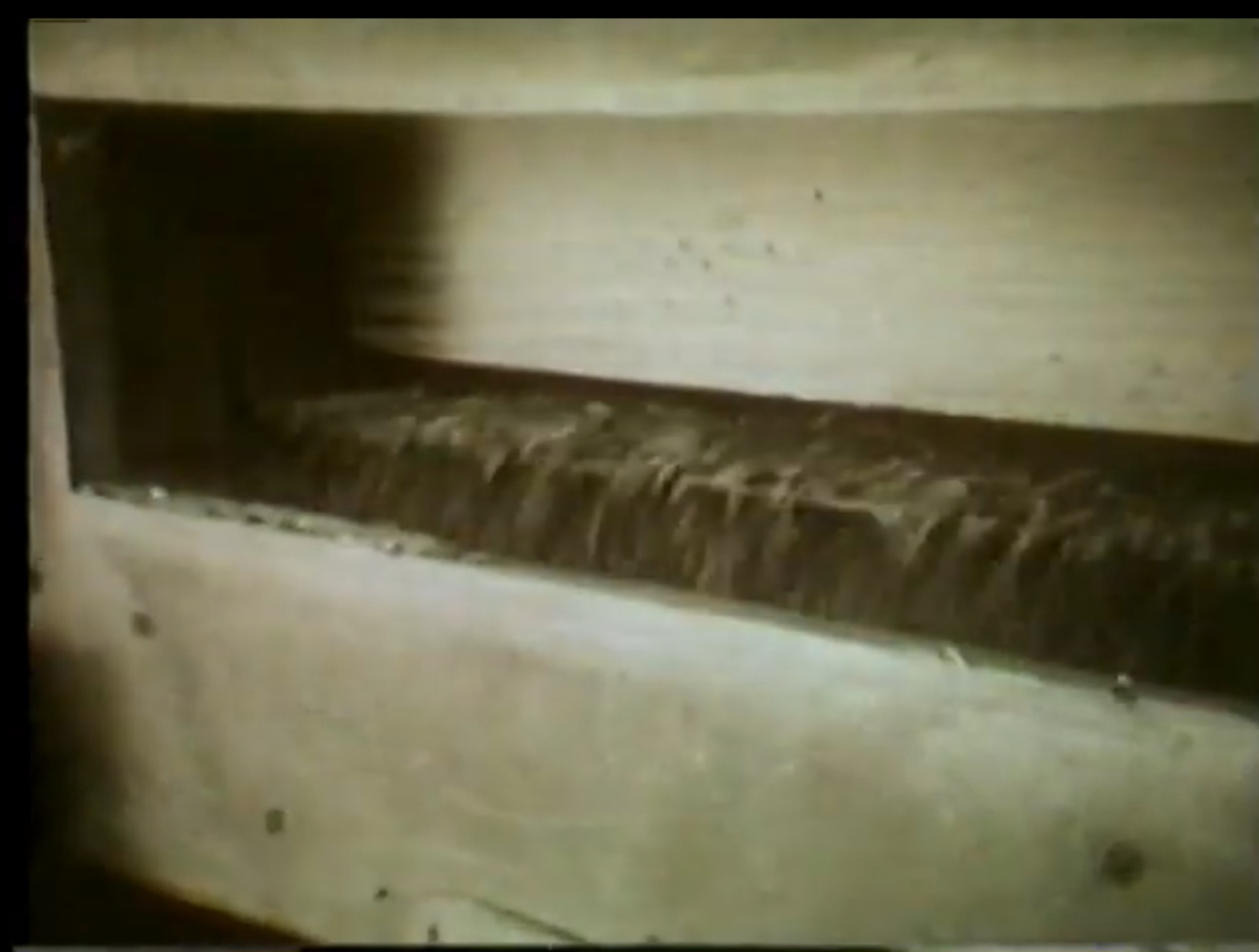 91. רואים בשלב זה במכונה את ניפוי המוץ (קליפות לא אכילות לאדם שעטפו את גרעיני חיטה) מהבר (גרעיני החיטה עצמם).