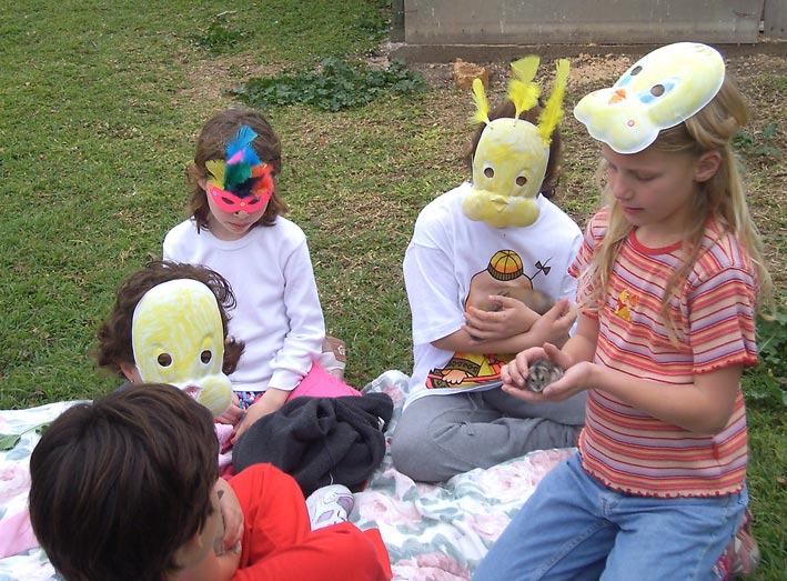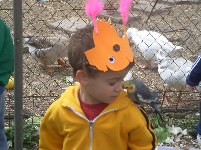 רגע של ליטוף בפורים.את המסכות הכינו במקום