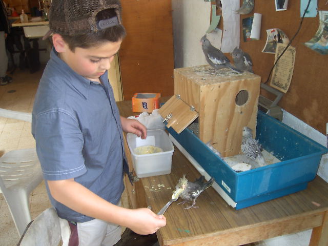 איתי בן יקר מאכיל את גוזלי הקוקטל.