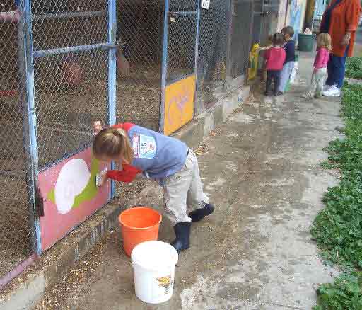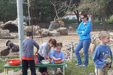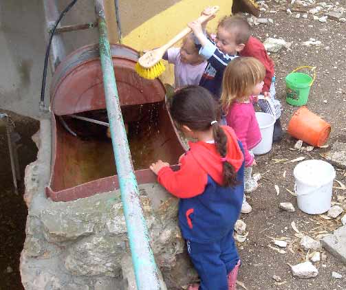 בתמונה:הילדים מנקים את השוקת של הפונים.(מצולמים:עמית שגב-עם