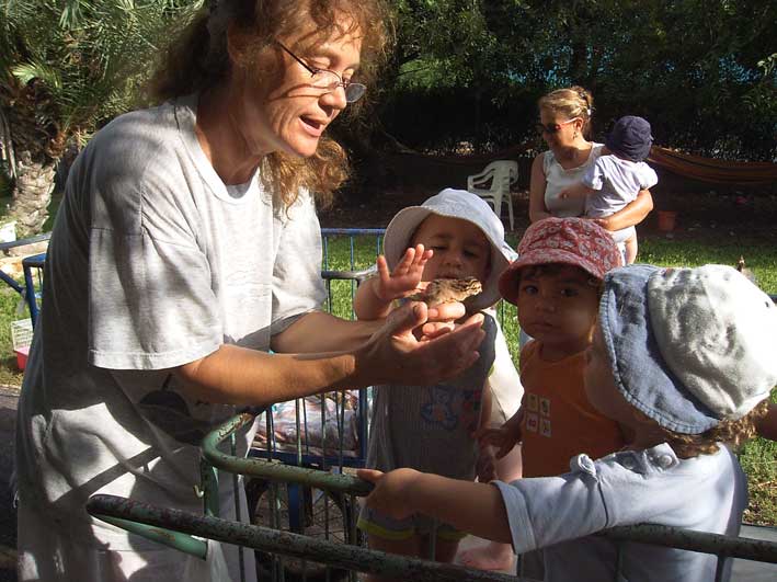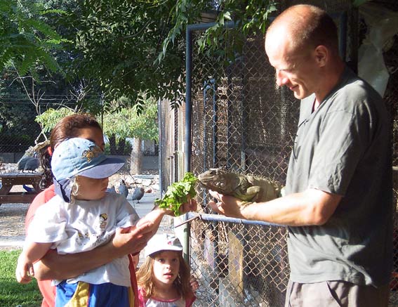 ריי מתנדב מקנדה ואייל מאכילים את אנה האיגואנה.