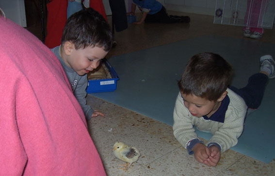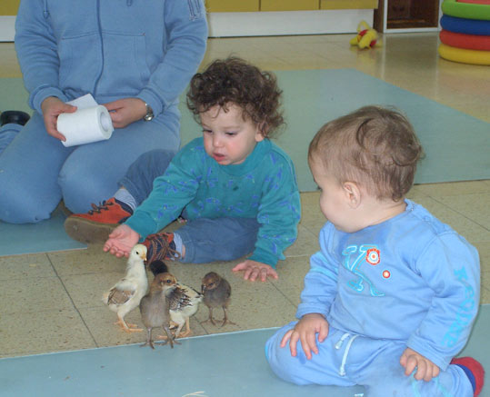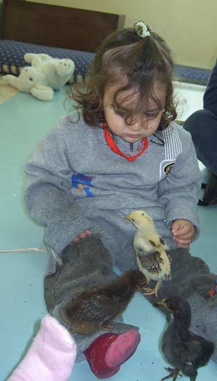 15 נבו עברון עם החולצה דיאדורה,מיכל פינקס בודקת את האפרוחים ונעמי קטינה.