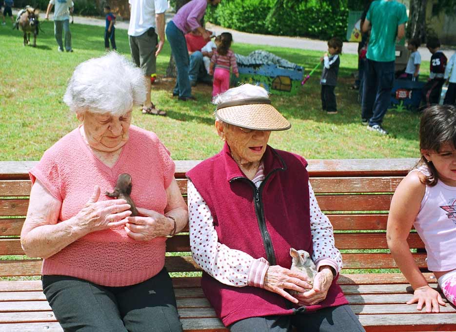ברכה לבנה עם החמוס, יהודית שביט עם הארנבון.