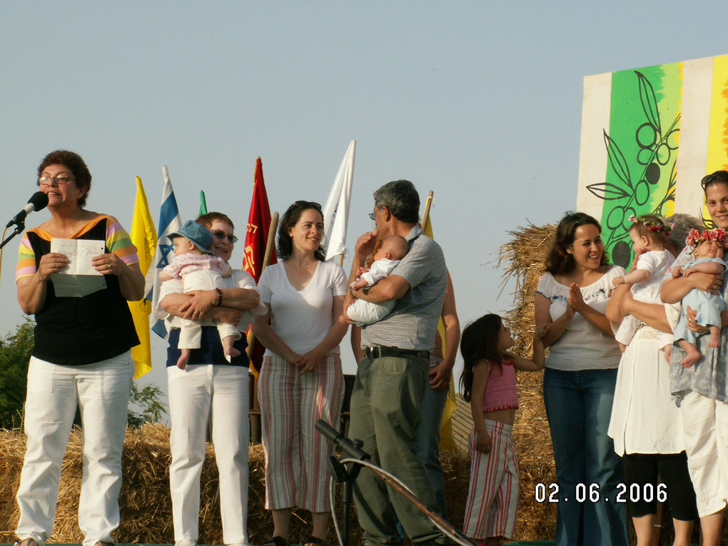 בהרבה קיבוצים בטקסי הבאת הביכורים - מעלים גם את התינוקות החדשים שנולדו השנה.
