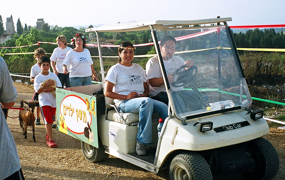 בחווה טיפולית בתל-מונד עם פרננדה מאקואדור, מובילים את תחילת התהלוכה.