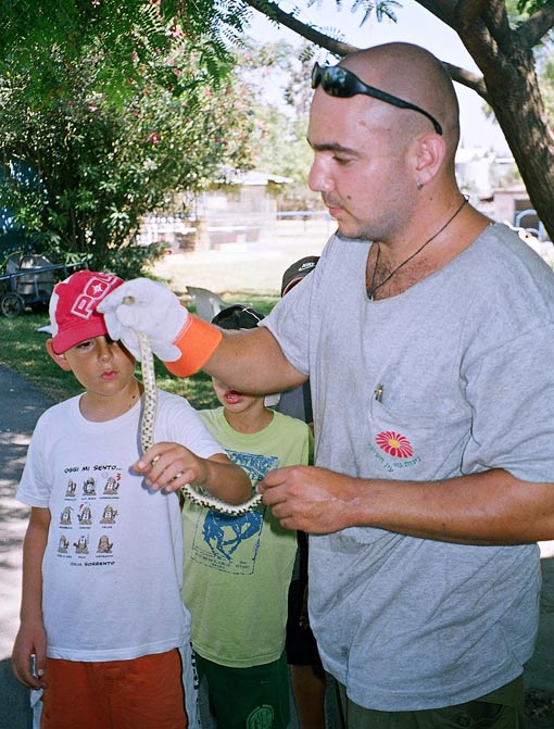 פלור מסתדרת פחות עם הנחש הזה - תלום קשקשים. אז קוראים ליונתן שיבוא, יתיידד איתו ויידד אחרים. יונתן עזר גם להרגיל את הצ'ינצ'ילות כשהיו חדשות, וזה היה הרבה עבודה.