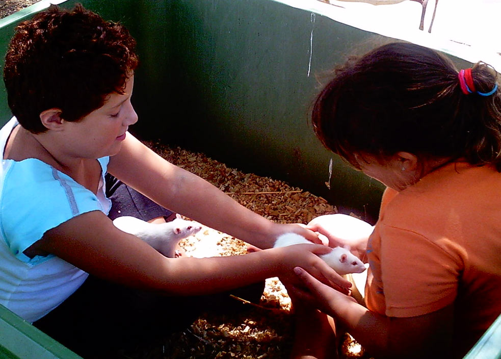 מרגילים את החמוסים לבני אדם, וגם כמובן מראים לילדים.