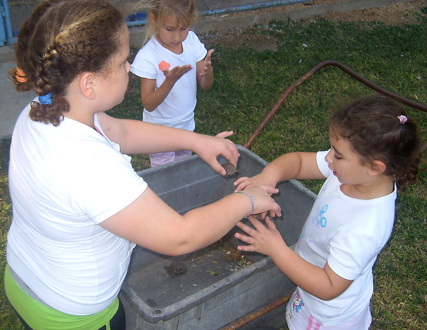 13) ילדי מרכז צעיר עושים טיול לצבים.