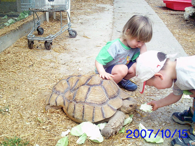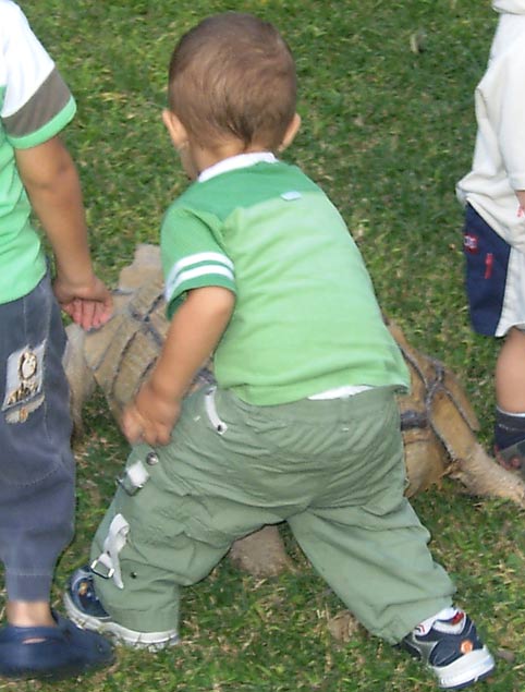 הצב התקבל כמתנה מ"ילד הג'ונגל" - רפי יפרח. לצב כפי שניתן לראות שריון קצת עקום, עקב בעיטה מסוס שקיבל בצעירותו - ושרד.