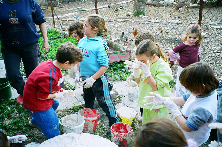 2. אוריה ודוד (עם הגב) יחד עם ילדי גן עופר.