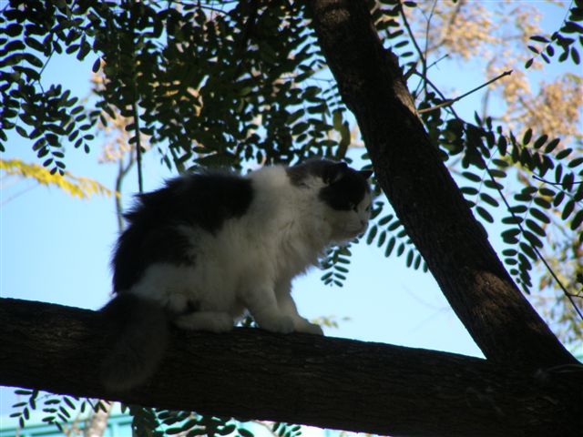 קצ'יטו החתול של המשק מסתכל על הכל מלמעלה (או מחכה שכולם כבר ילכו והמשק יחזור להיות שלו)