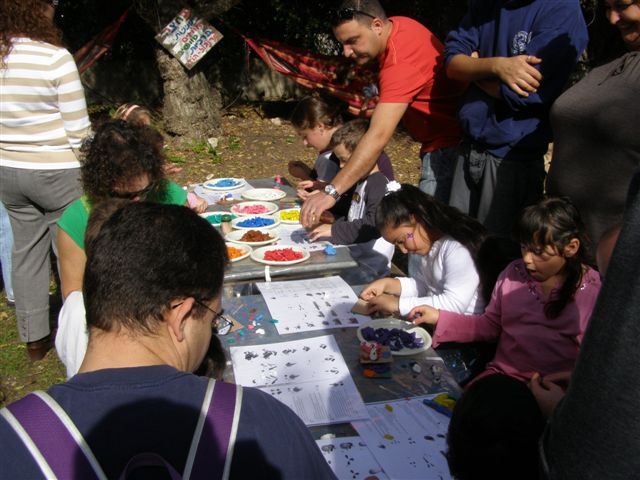 פינת יצירה של חיות פלסטלינה בהדרכת יונת קציר גולן, שהיא גם מאיירת ספרים.
