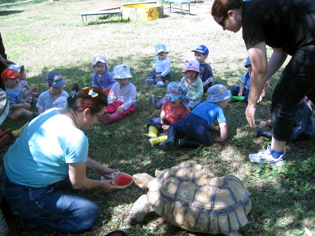 כל בוקר הילדים מתחילים את הבוקר עם עקום הצב, הוא מחכה לילדים, והילדים גם בחורף כשקר ועקום לא רוצה לצאת, מבקשים לראותו ולבקר בִּכְלוּבוֹ.