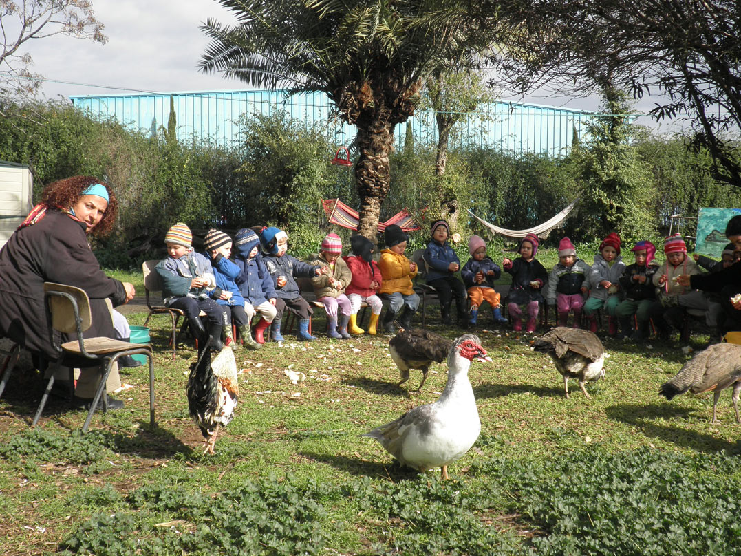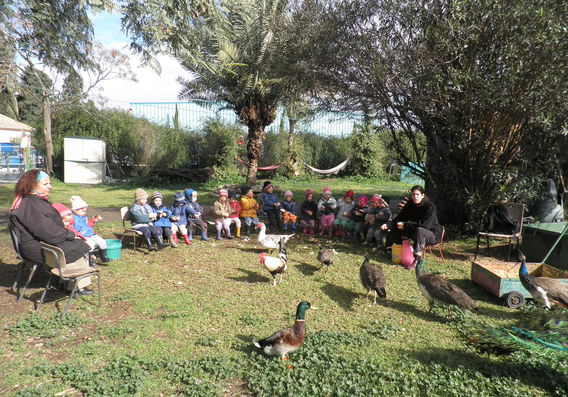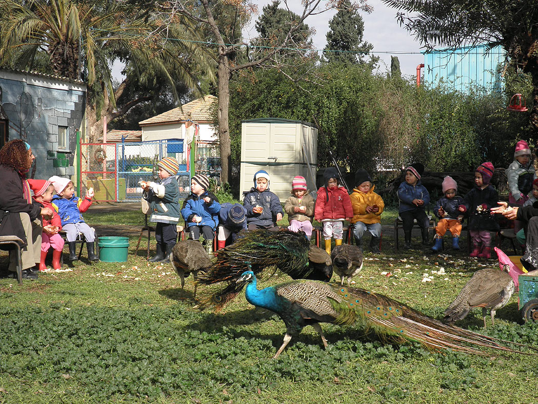 2. פעוטון סחלב החמודים נותנים אוכל לברווזים, לטווסים ולתרנגולות