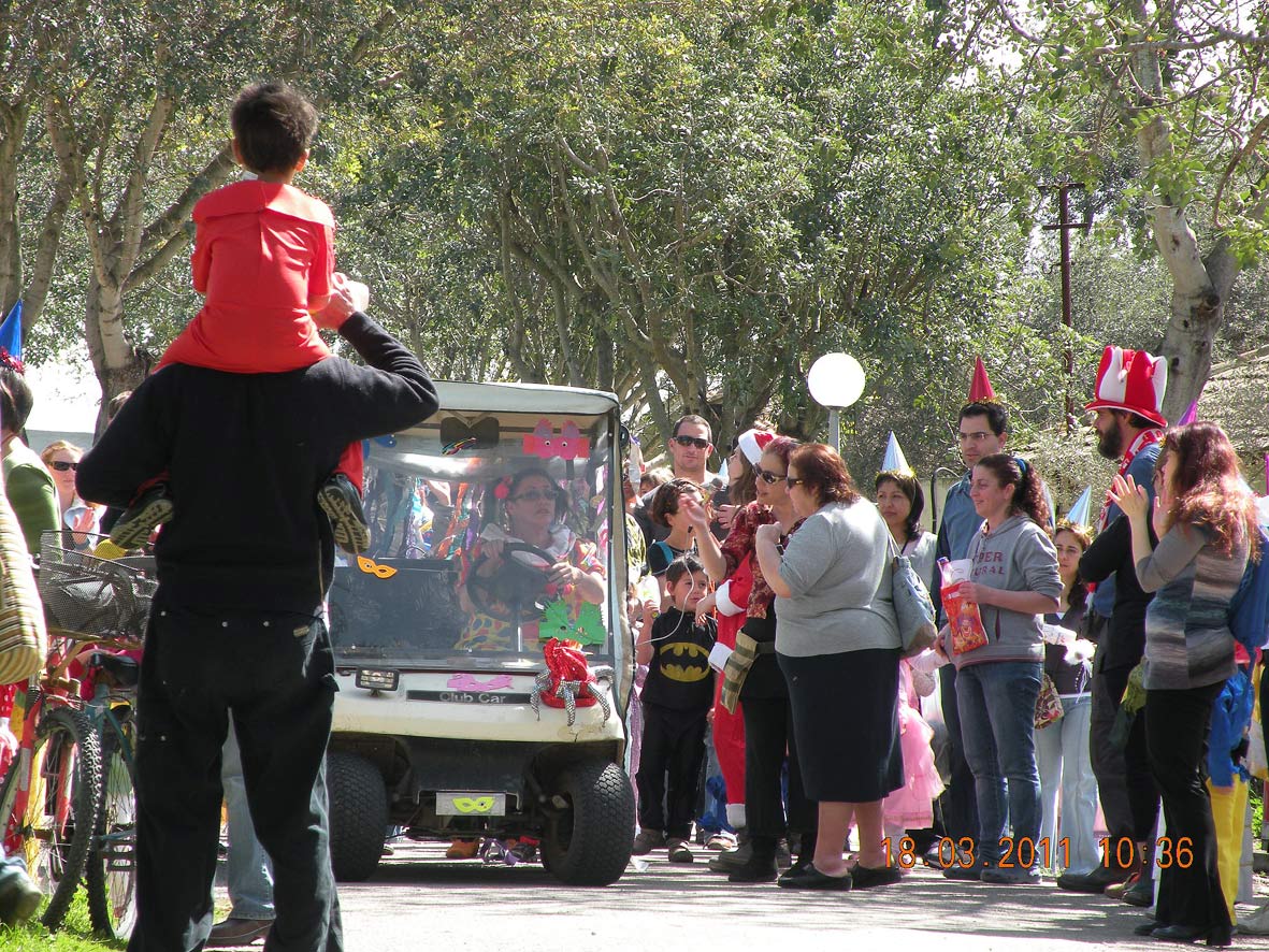 26. "יום טוב לנו, חג פורים הוא חג גדול..." ושמח! והמשק כמובן מצטרף לחגיגה, ופלור בתהלוכה מחופשת לליצן עם הקלאב קאר המקושט והפורימי! המופיעים בתמונה מימין: ליאת ברעם-אידלברג, , אלעד תבור, דניאלה טייכנר, יערה זנבר, עיני גלילי, סילביה גלילי, ענבר דקל, הסבתא של דה-קסטרו, אמיר קטינא, שביט סהר-סלום, הילד בטמן – אביב תבור