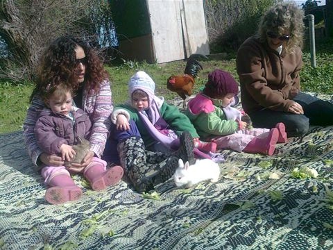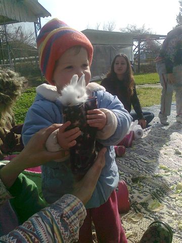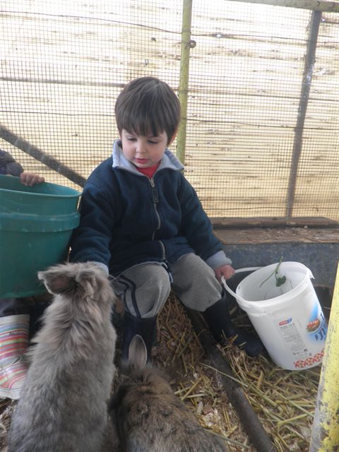 תמונה אחר כך: פעוטון סחלב בפעילות. רואים את יאיר פרקר מאכיל את הארנבת.