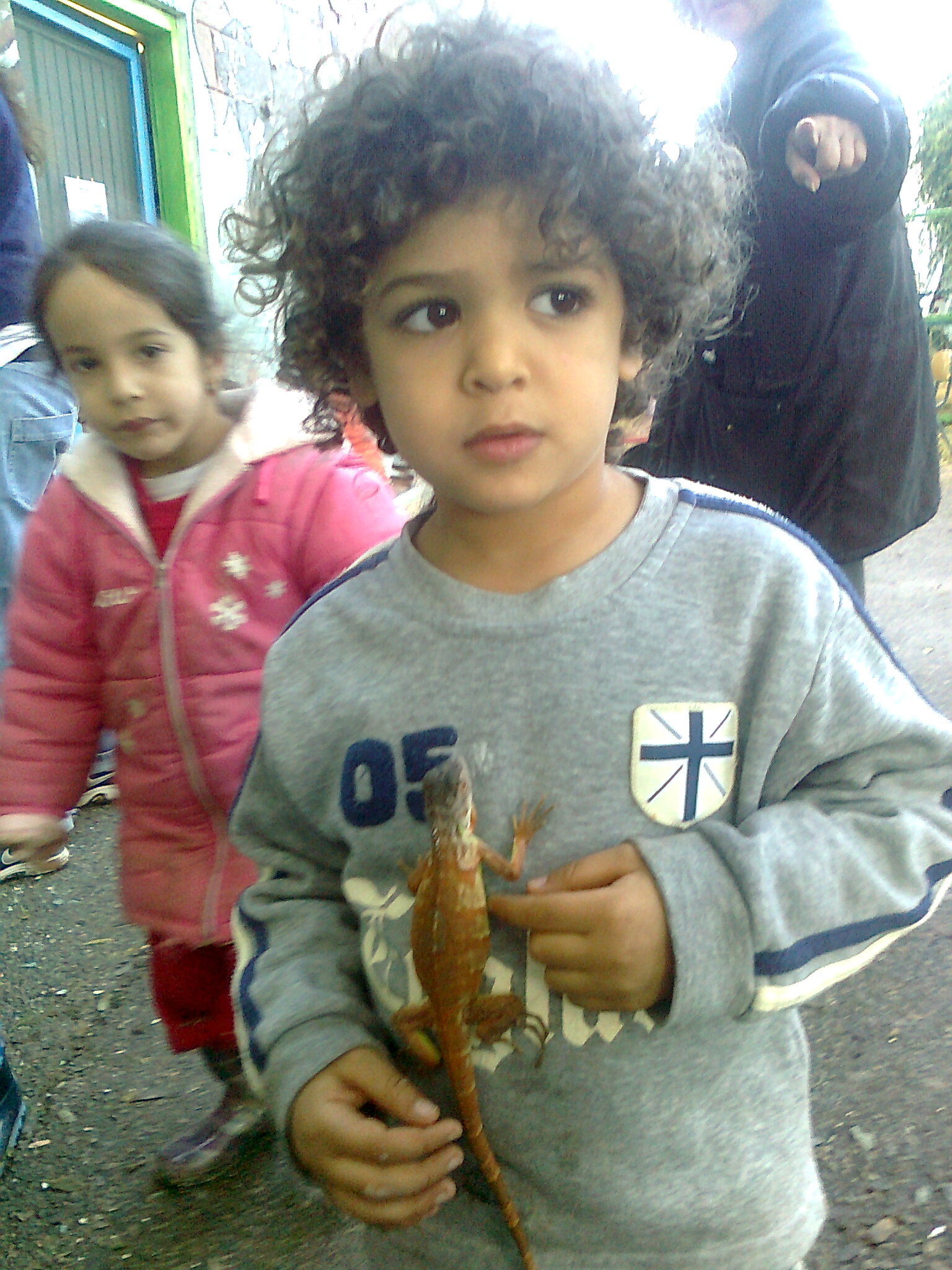 הילד עם האיגואנה: אלון מלכה. התמונה מחגיגת המשק.