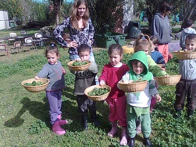 תמונה שנייה - 4 בנים מגן עופר באים פעם בשבוע בצהריים לפעילות במשק. הפעם הם קוטפים חובזות. מימין: עודד שוק