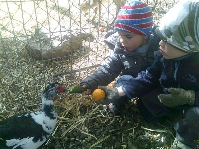 תמונה 3: ליאם בן זקן מאכיל את הברווז.